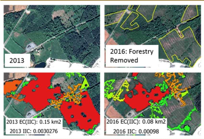 - Evaluation & measurement of how changes to the landscape will actually impact upon a species habitat connectivity
